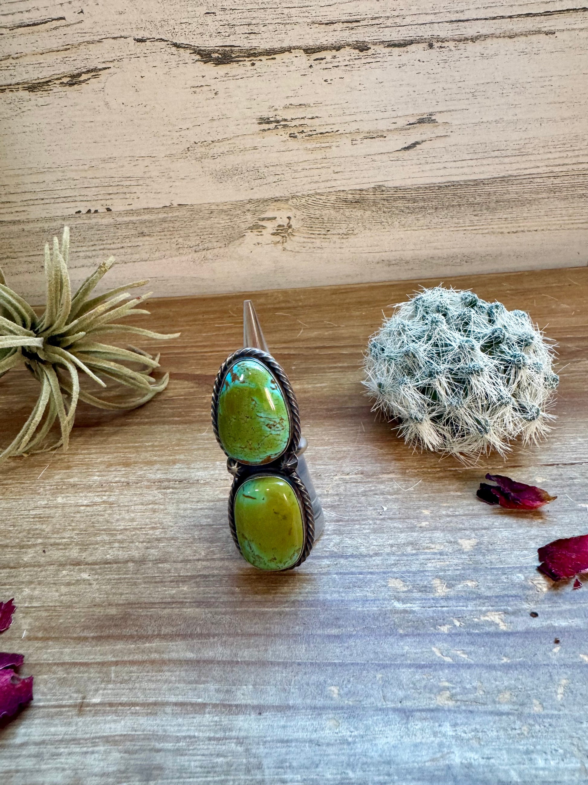 2 Stone - adjustable kingman turquoise ring and sterling silver