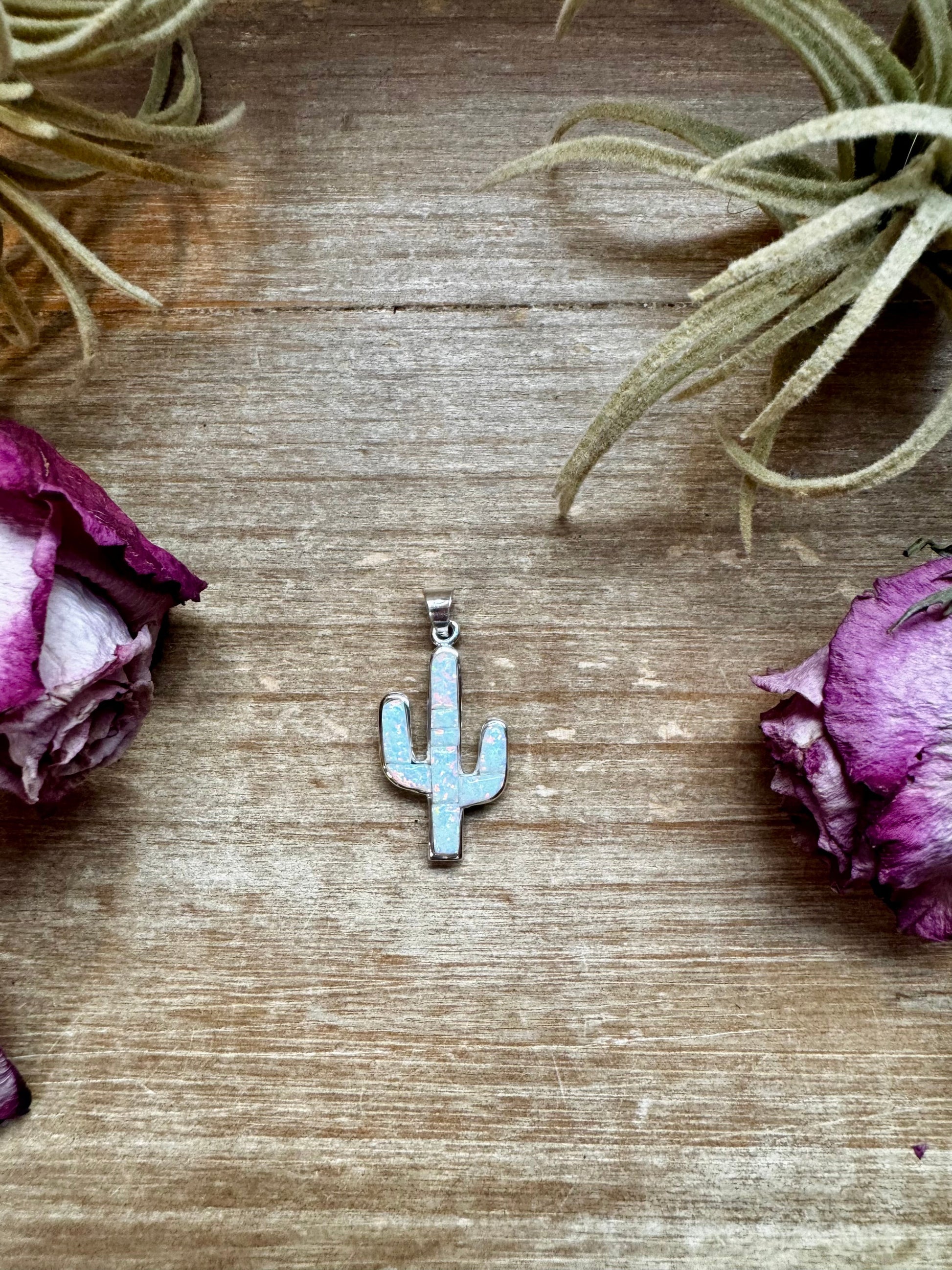 Cactus Pendant with White Opal – Sterling Silver – Fits 4mm Pearls
