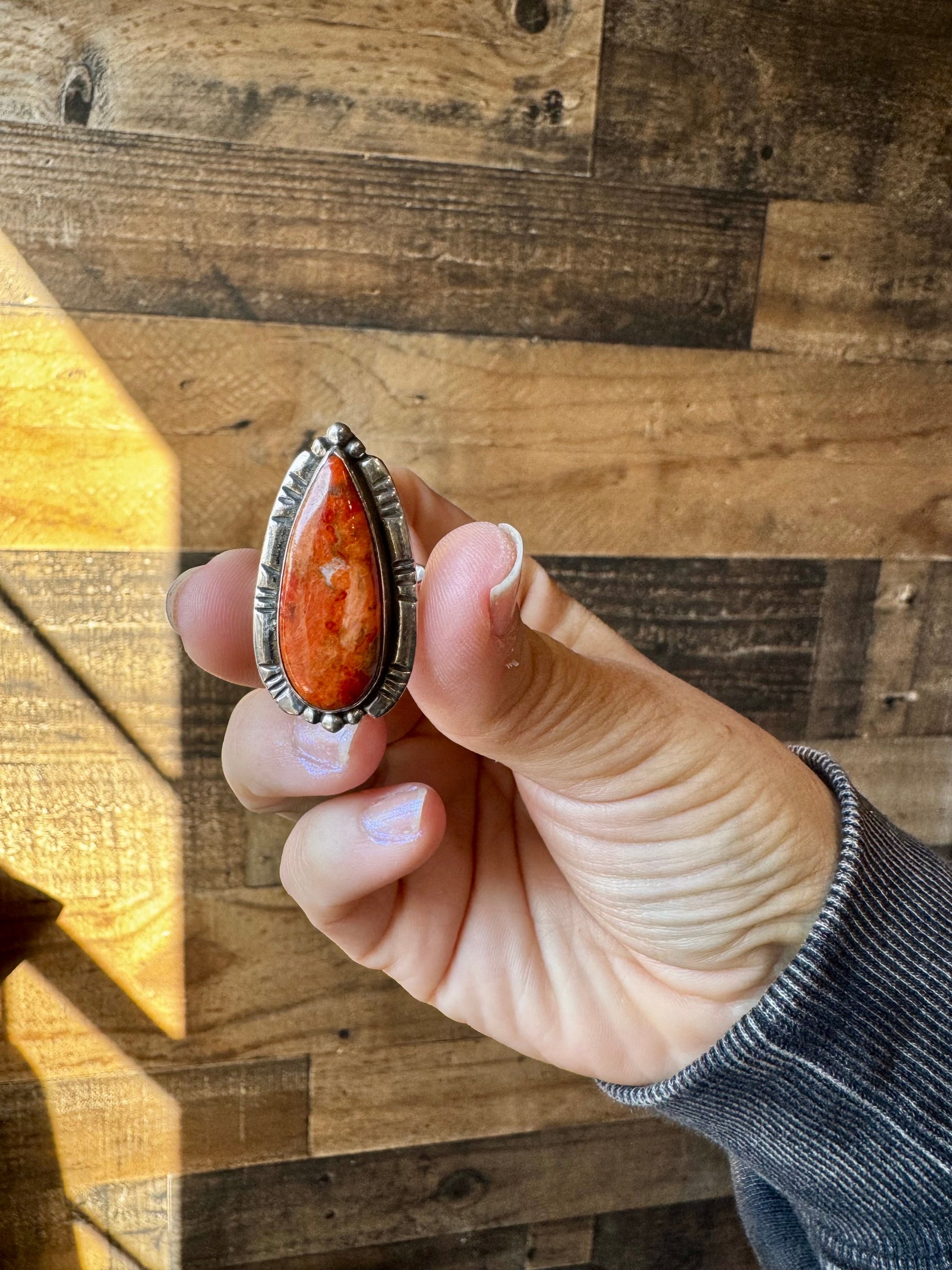 Long Ring - Adjustable - Apple Corral & Sterling Silver