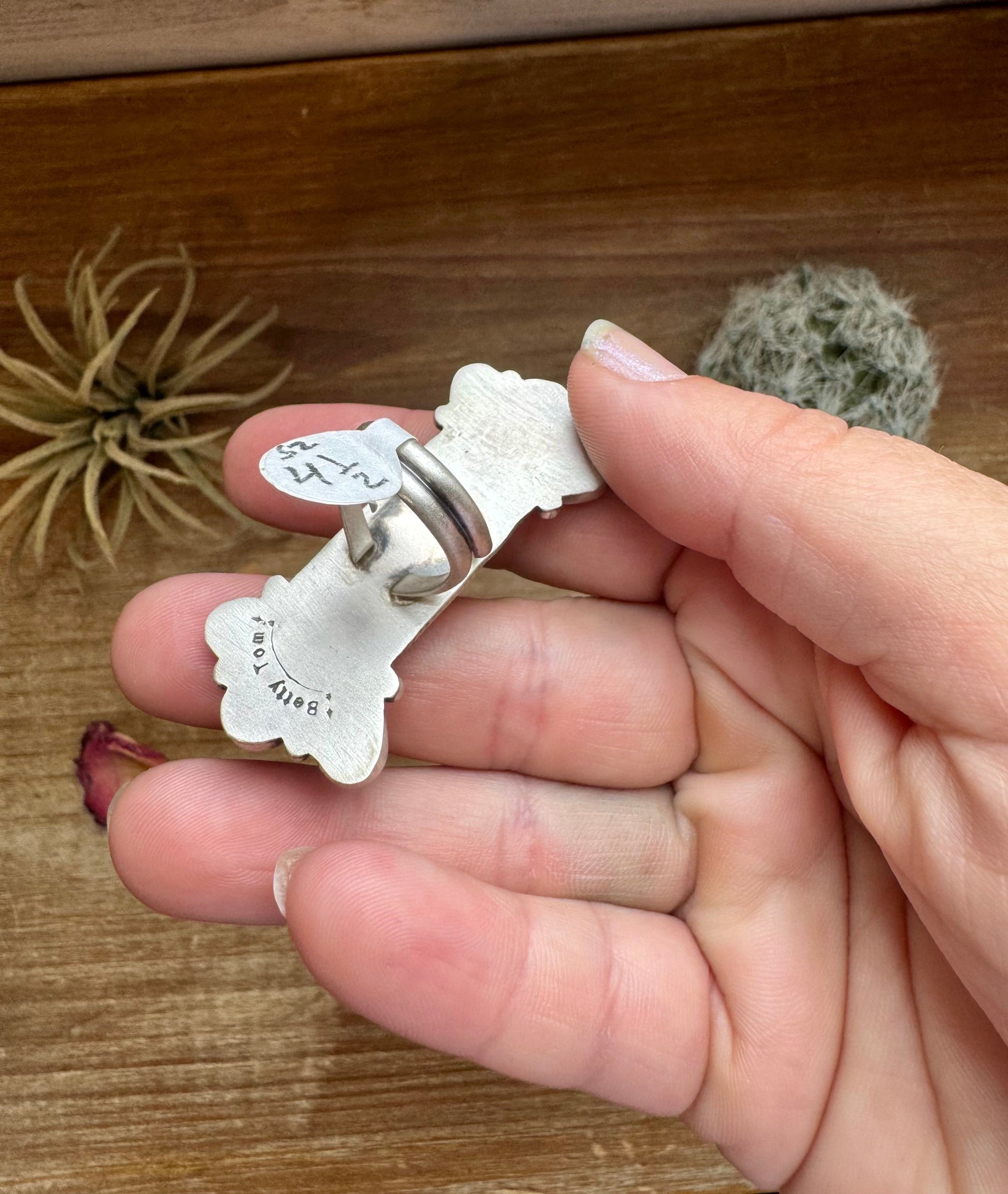 Long Ring- Size 4 1/2 - mix stone turquoise, spiny and sterling silver