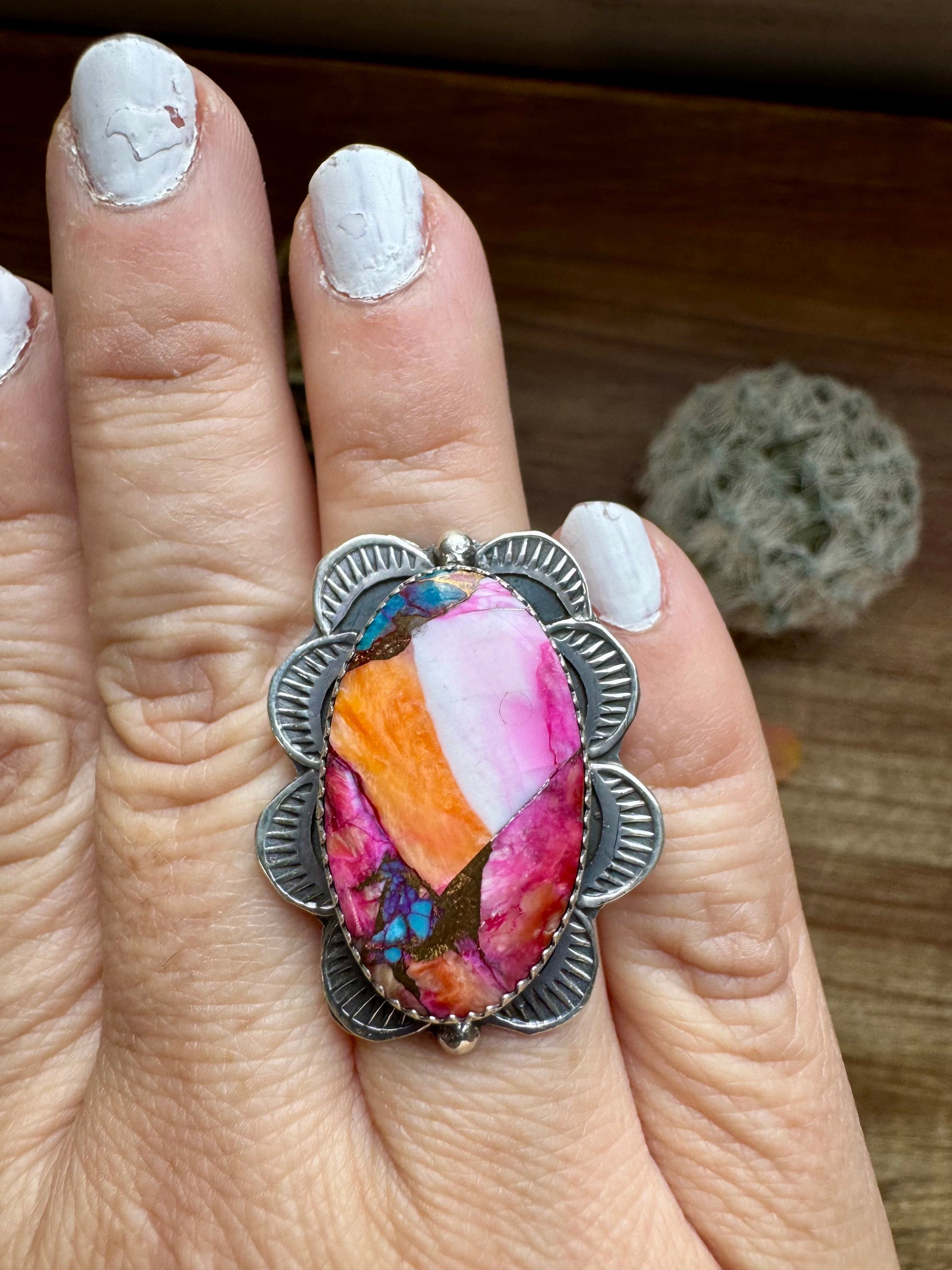 Oval rings - adjustable -Dahlia ring and sterling silver
