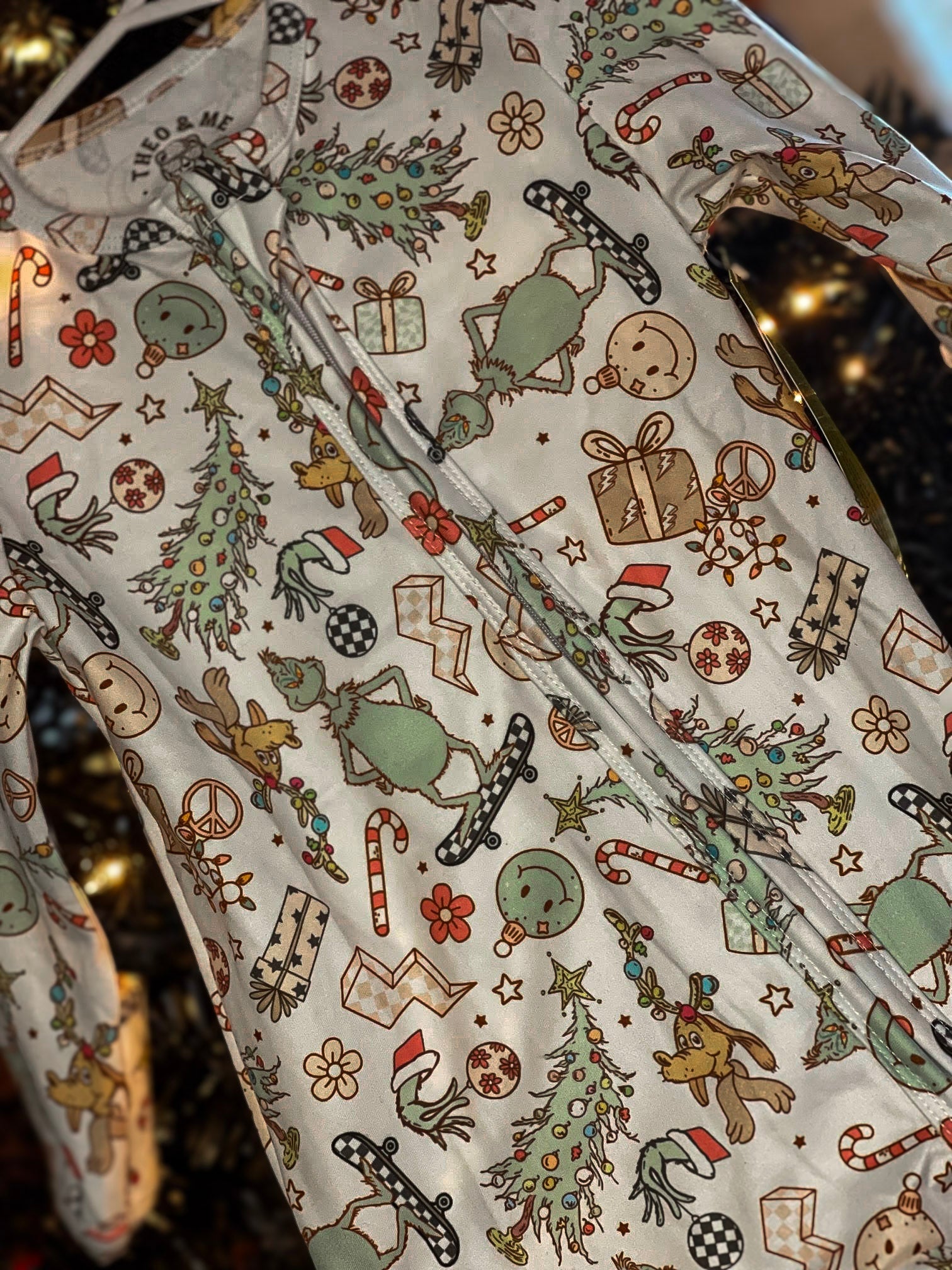 Our selection of rompers is perfect for creating holiday traditions or staying cozy after a day of festive activities. Featuring a variety of unique Christmas designs, these rompers also have the option for convertible hands and footies for easy day-to-night transitions. From the trusted brand Ruffles & Bowties.