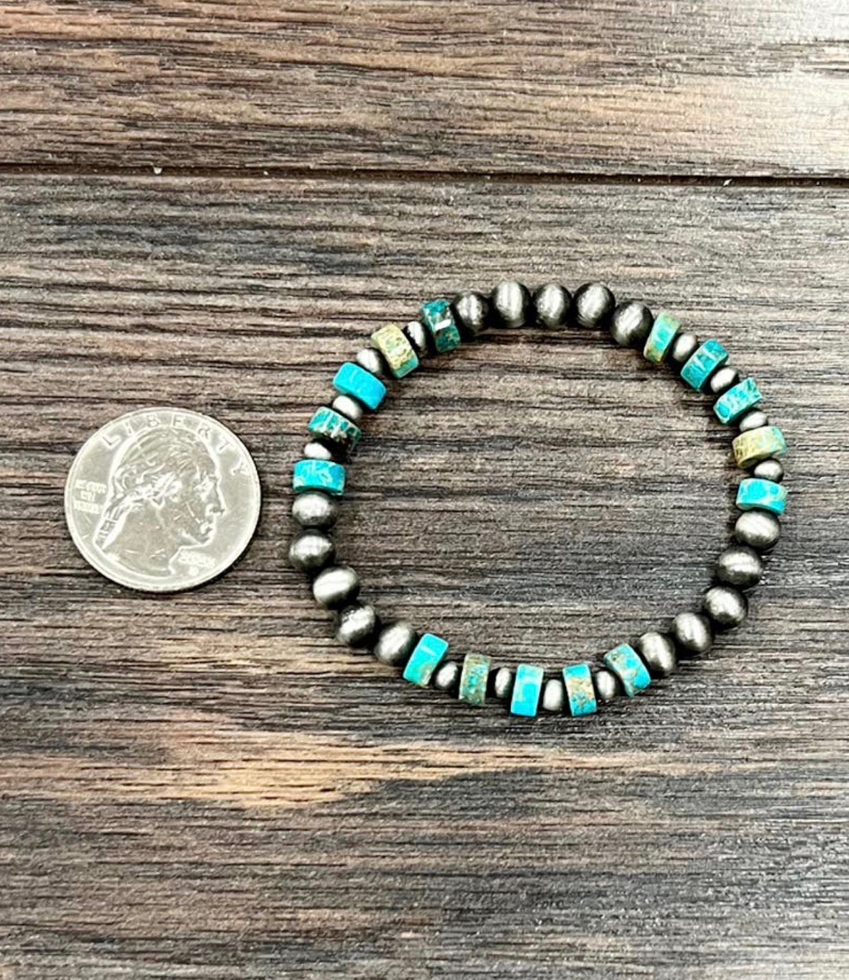 Handmade 6mm Rondelle Gemstone & 6mm Navajo Bead Stretch Bracelet